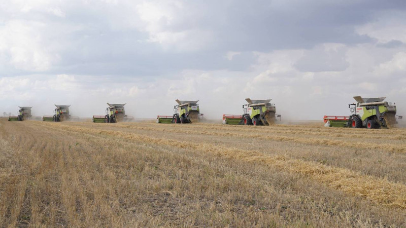 "Я родился и вырос здесь, в Коргалжынском районе, селе Жантеке. Наше хозяйство берет свое начало еще с 1992 года, когда отец открыл крестьянское хозяйство "Абылай". Мы начинали с 400 гектаров. Сегодня мы сеем в общей сложности 12 тысяч гектаров, из них 11,5 тысячи - пшеница, остальное - ячмень и горох. В сезон у нас работает около сорока человек", - рассказал директор предприятия Абылай Медеубаев.