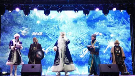 Аяз Ата и дети провели церемонию зажжения главной елки ВКО и завели большой хоровод вокруг новогодней елки.