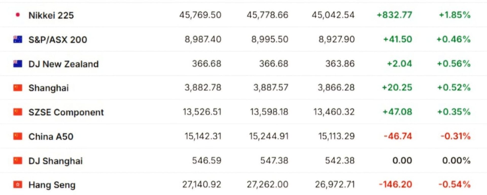 При этом в Японии индекс Nikkei 225 повысился на 1,85 процента, поддерживаемый ростом акций Hitachi после объявления о партнерстве с OpenAI в области инфраструктуры ИИ.