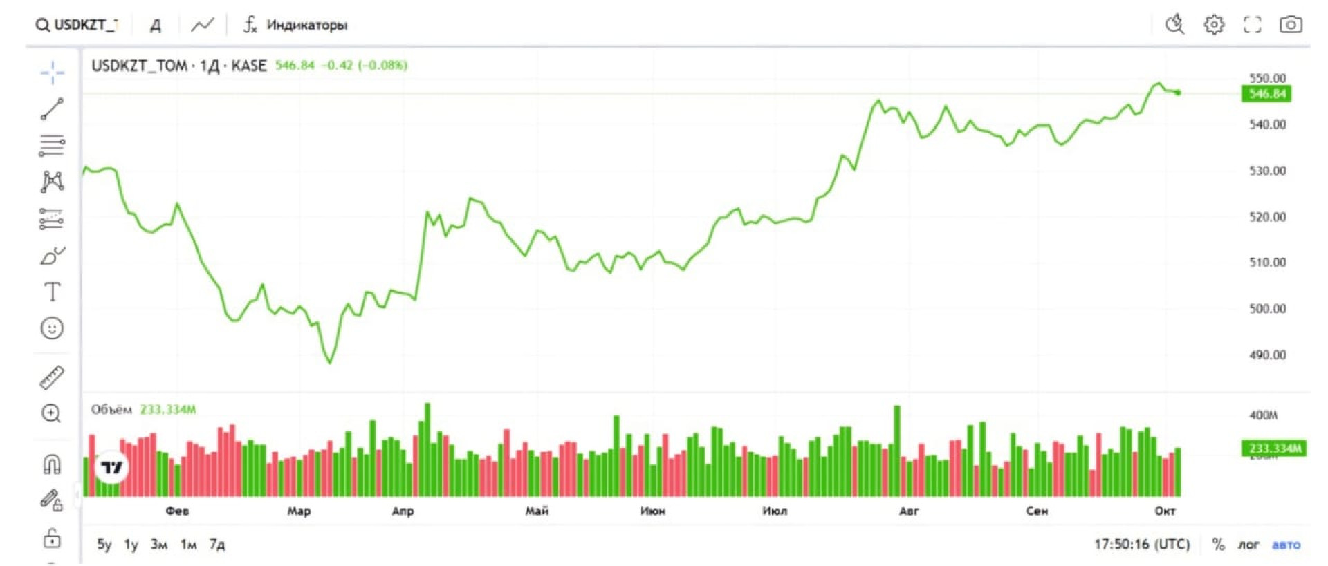 Отметим, что официальный курс Национального банка на 3 октября составляет 546,96 тенге за доллар.