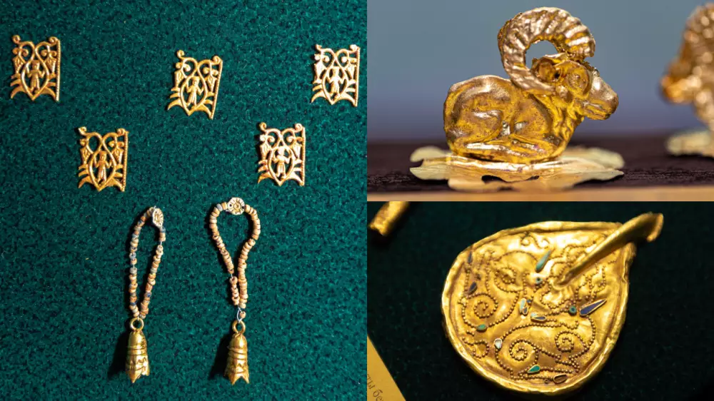 "Точно можем сказать, что древние мастера не копировали друг друга. У каждого мастера был свой почерк. Все найденные изделия очень изящные, сделаны аккуратно. Большинство других конских украшений изготавливали из тонкой фольги. Здесь же украшения из плотного золотого листа, фольга тоже более толстая. Именно таких богатых, плотных украшений для конского снаряжения я до сих пор не встречал", - рассказал Абдеш Толеубаев.