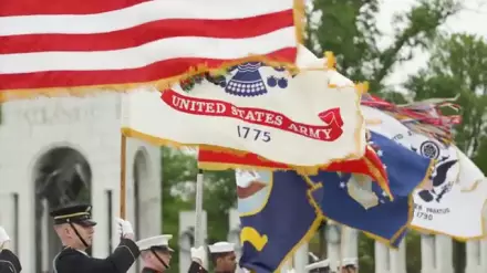 "8 мая 1945 года США и Великобритания одержали победу над нацизмом. Американский дух всегда будет побеждать", - говорится в подписи к фотографии, на которой президент США Дональд Трамп и его супруга возлагают цветы к мемориалу Второй мировой войны.