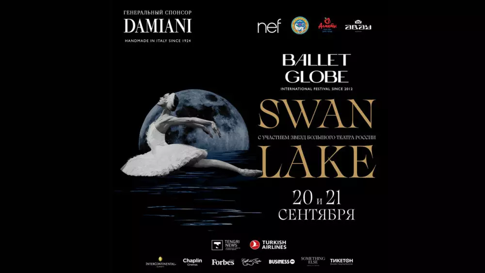 20 и 21 сентября 2022 года в рамках празднования Дня города Алматы Международный фестиваль танца Ballet Globe приглашает жителей и гостей города на встречу с шедевром балетного искусства – спектаклем "Лебединое озеро" на великую музыку Чайковского с участием ведущих солистов Большого театра России.