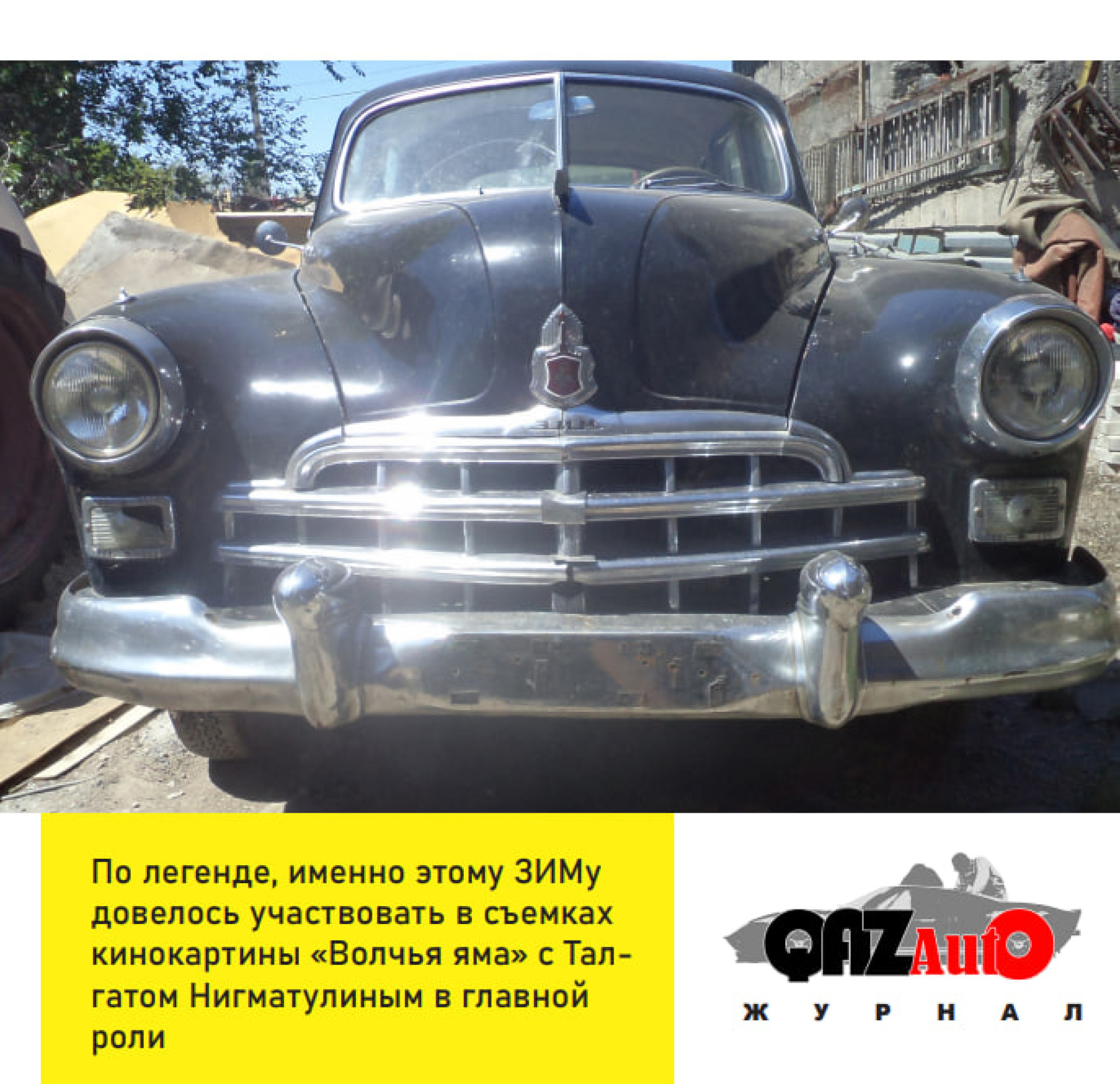 Также меня заинтересовал факт, свидетельствующий о том, что этот ЗИМ снимался в кино не в первый раз. Его актерская карьера началась еще в семидесятых на киностудии "Кыргызфильм" в роли автореквизита для фильма "Волчья яма" с Талгатом Нигматулиным в главной роли.