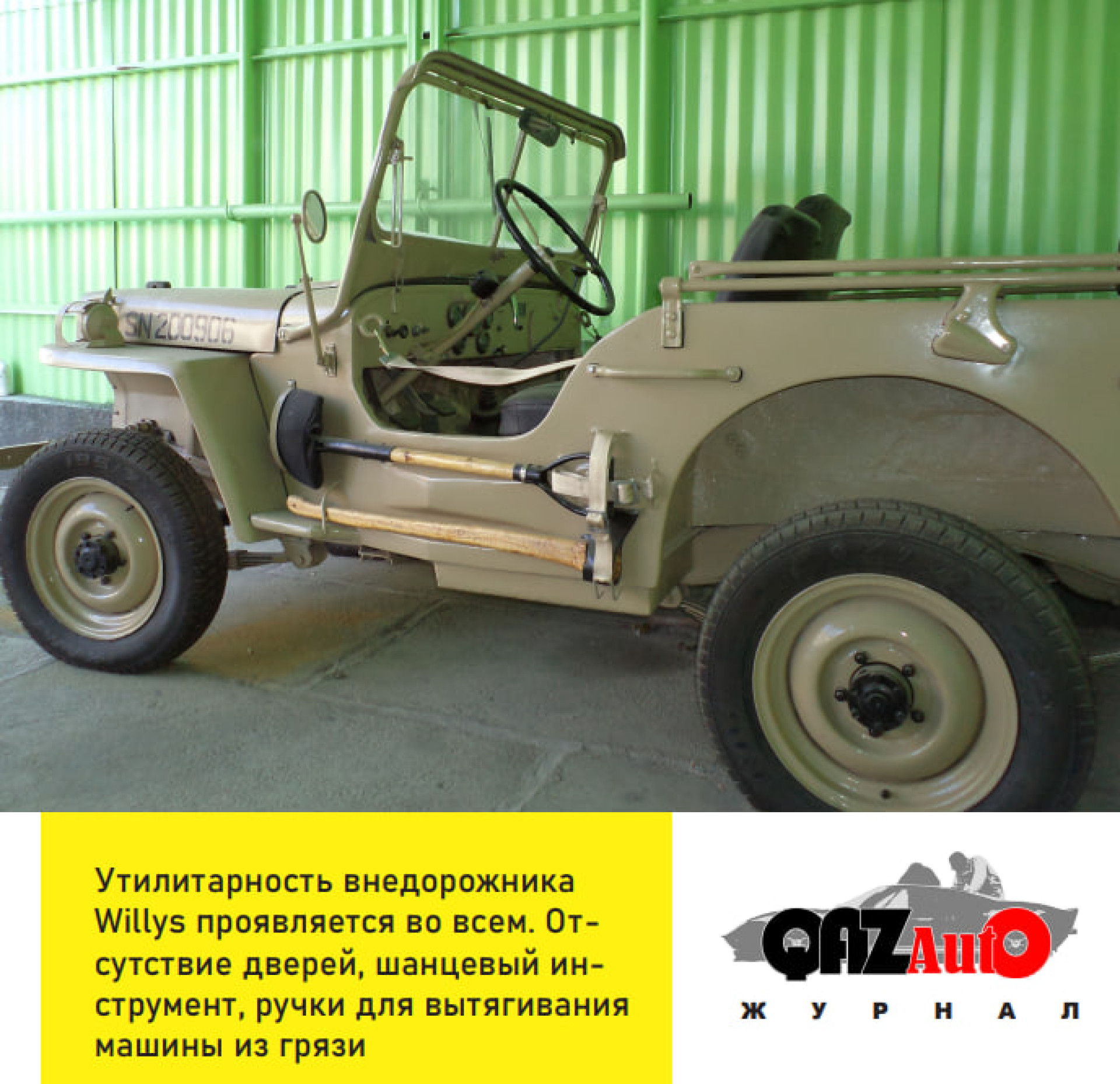 Его спартанская внешность вкупе с необходимыми атрибутами в виде прикрепленных к кузову лопаты, топора и топливной канистры намекала на то, что он не из простых работяг. И это действительно так: этот экземпляр один из пятидесяти двух тысяч Виллисов, поставленных в СССР за время Второй мировой войны по "Лэнд-лизу". Вопросы о том, как этот автомобиль попал на территорию бывшего КазССР, я задавать не стал.