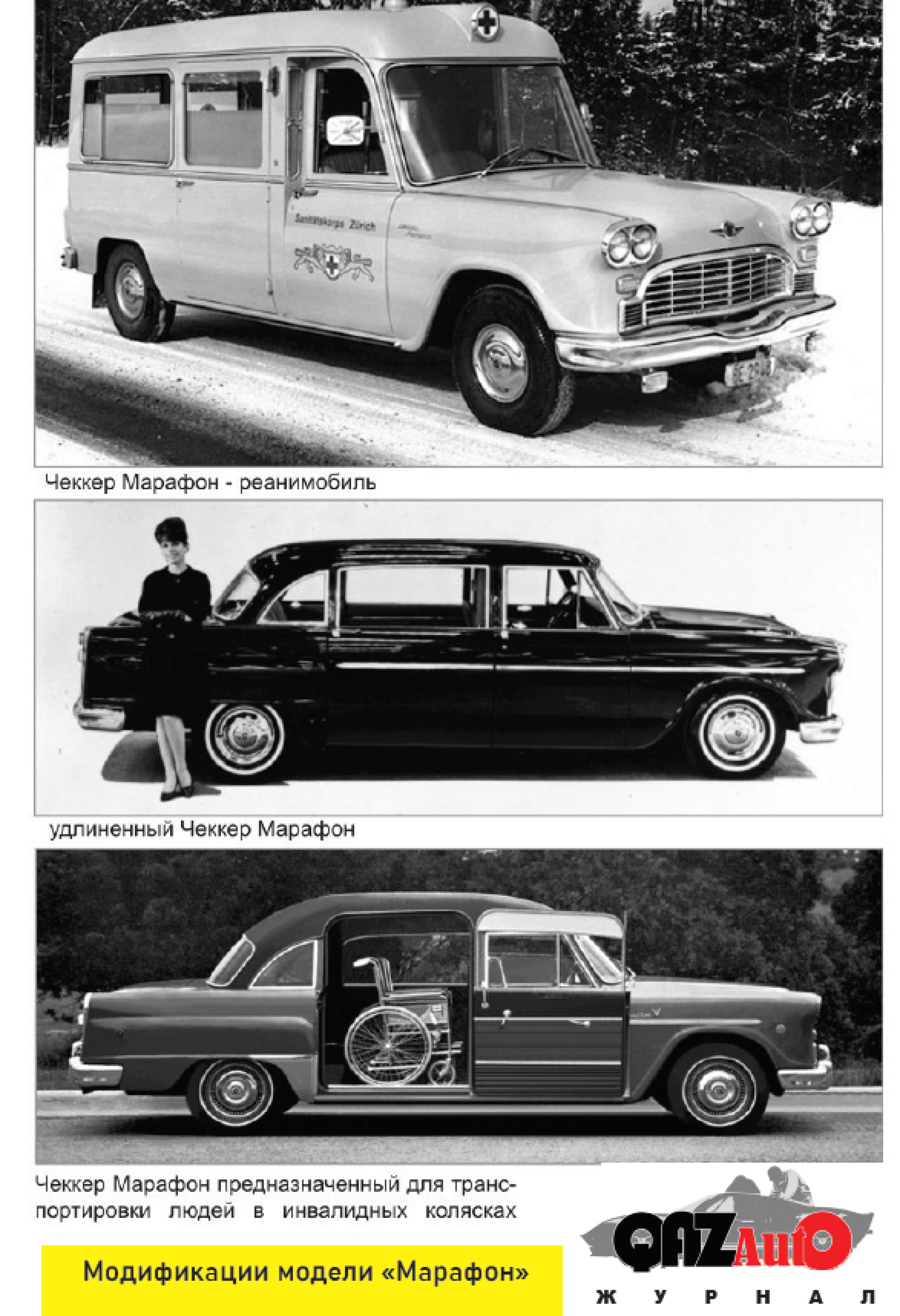 - седаны Checker Medicar с расширенной задней дверью и слегка приподнятой крышей для людей, передвигающихся на инвалидной коляске;