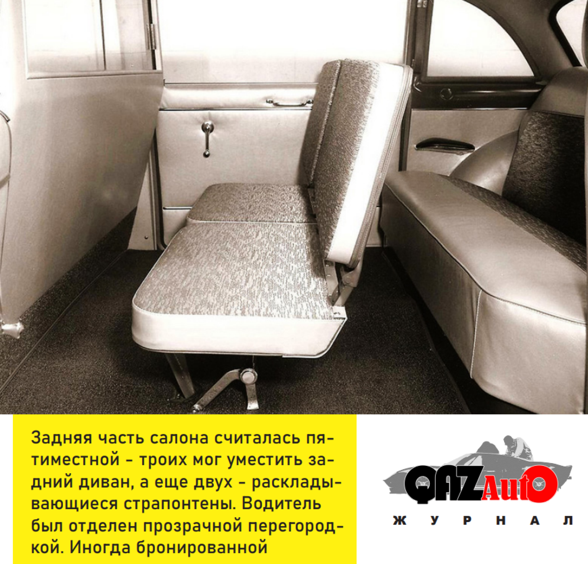 Что же касалось автомобиля в целом, то это был "таксомотор до мозга костей". Чего только стоили специальные алюминиевые бамперы, бронированные перегородки в салоне и возможность водителя самостоятельно запирать и отпирать замки пассажирских дверей.