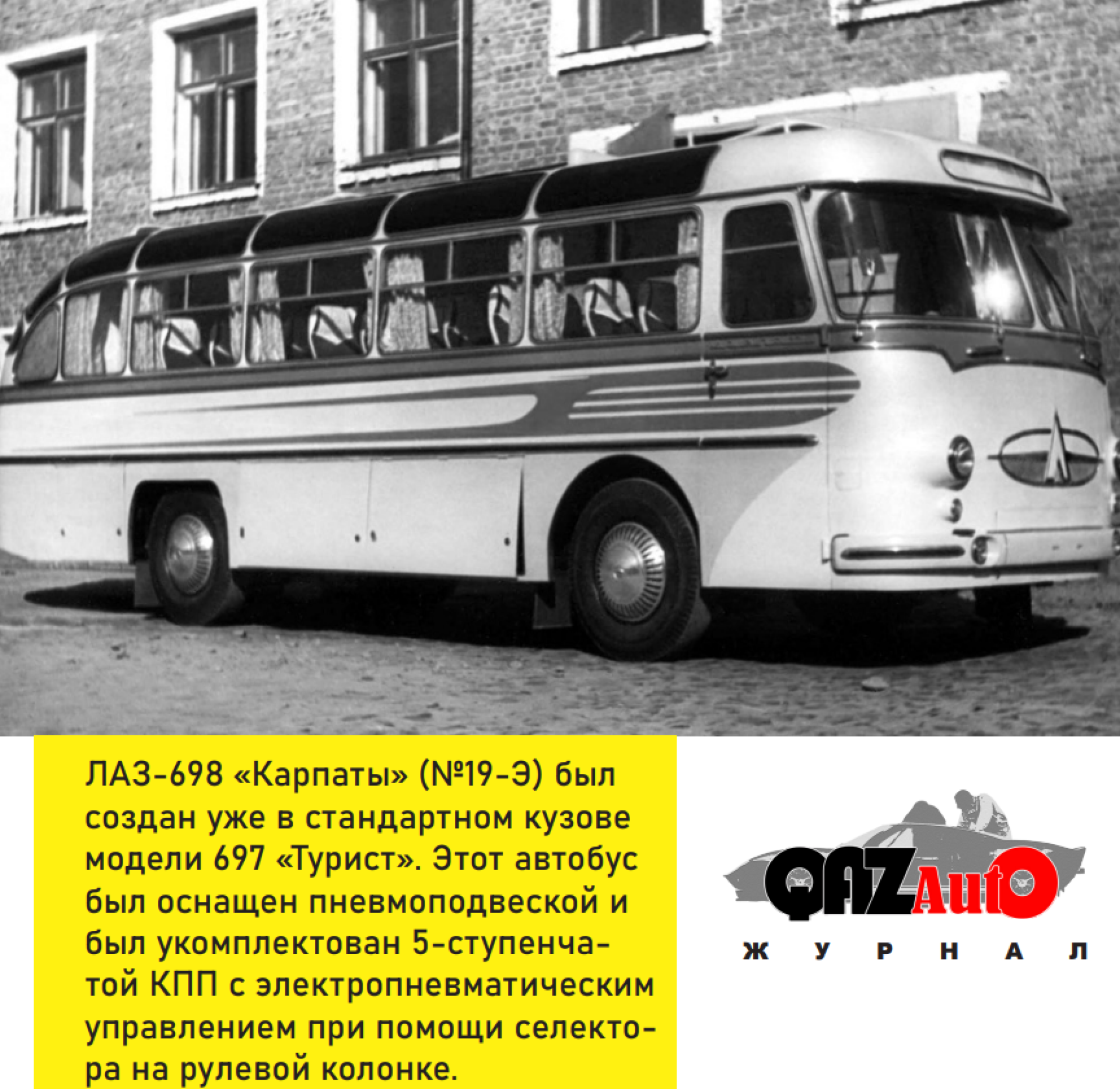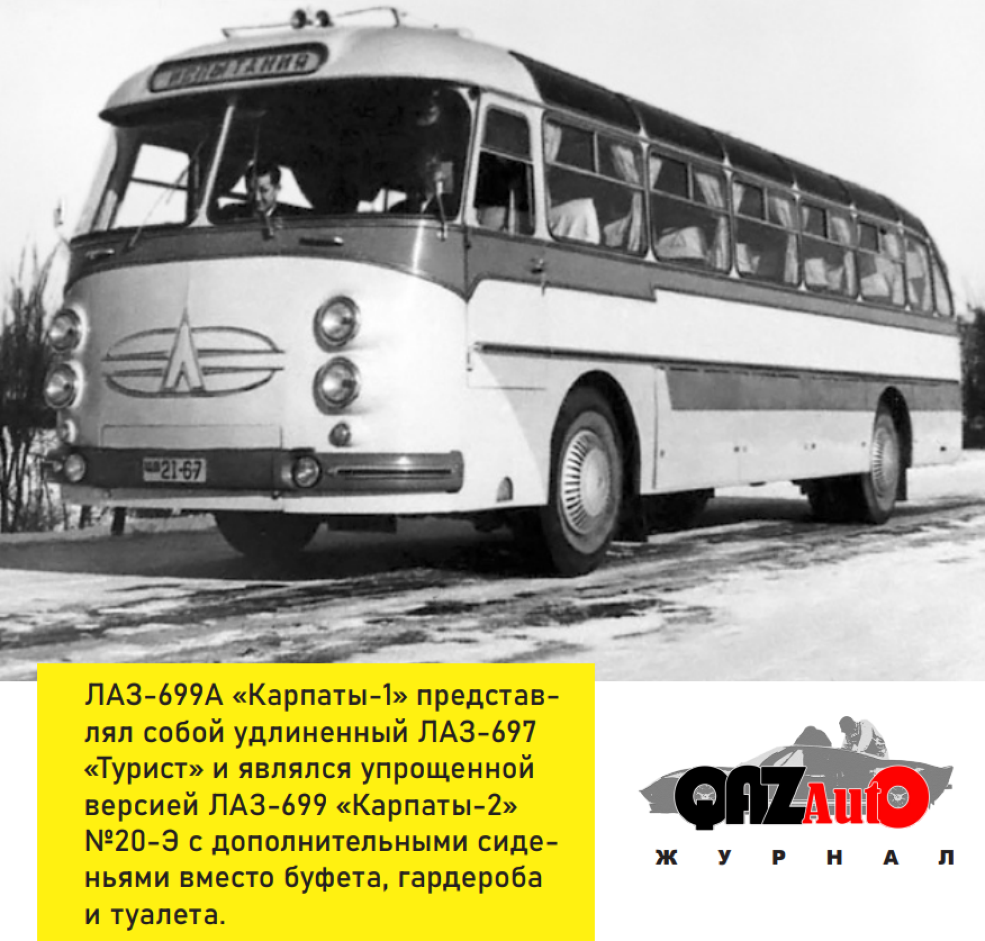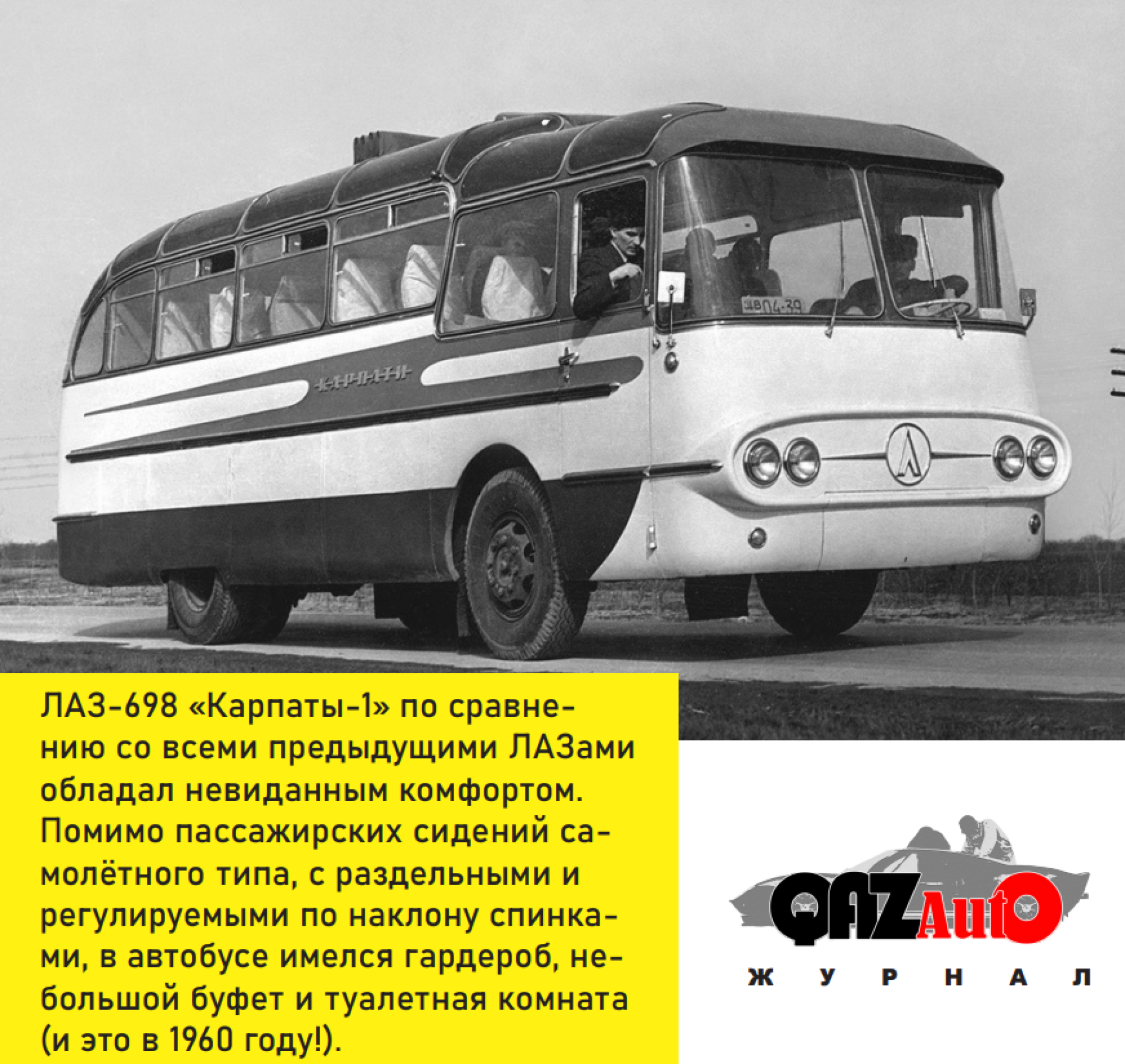 Модель 698 с собственным именем "Карпаты" была действительно хороша. Подумайте только: уже в 1960 году этот автобус имел гидромеханическую автоматическую коробку передач, гидроусилитель руля, пневматическую подвеску, полутораэтажный кузов со сдвижной частью крыши, а также гардероб, туалет и буфет в салоне. Да, на нём не только в междугороднее плавание можно было бы отправиться, но и в кругосветное.