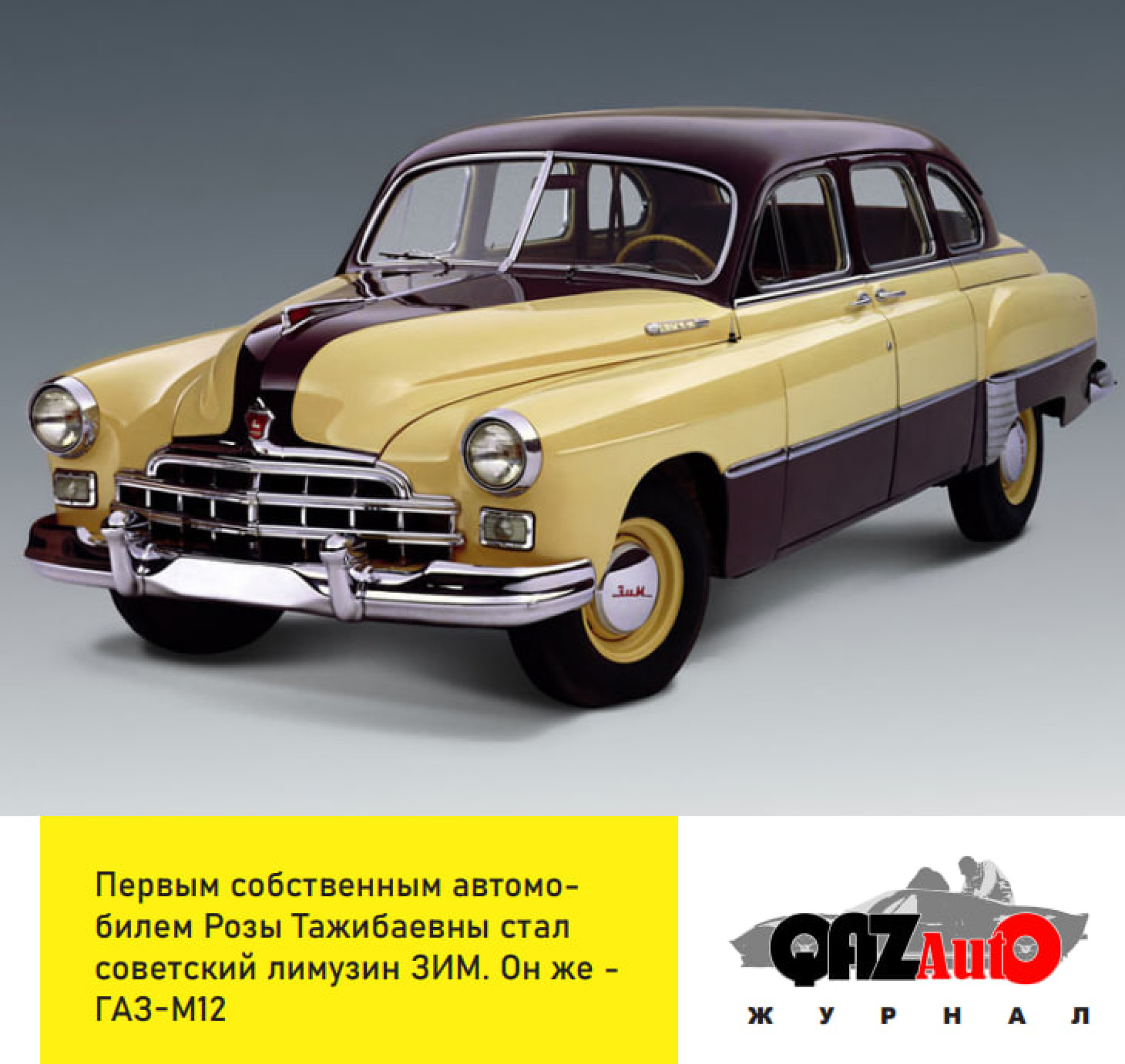 По воспоминаниям членов семьи, первым собственным автомобилем Розы Тажибаевны стал престижный советский лимузин ЗИМ - он же ГАЗ М-12. Случилось это примерно в 1958 году.