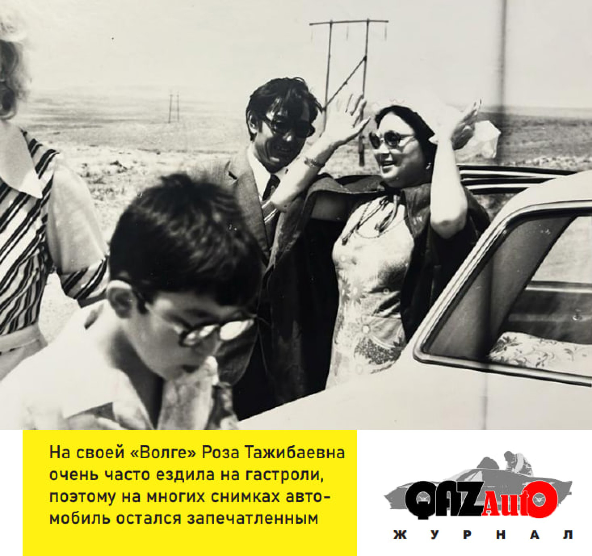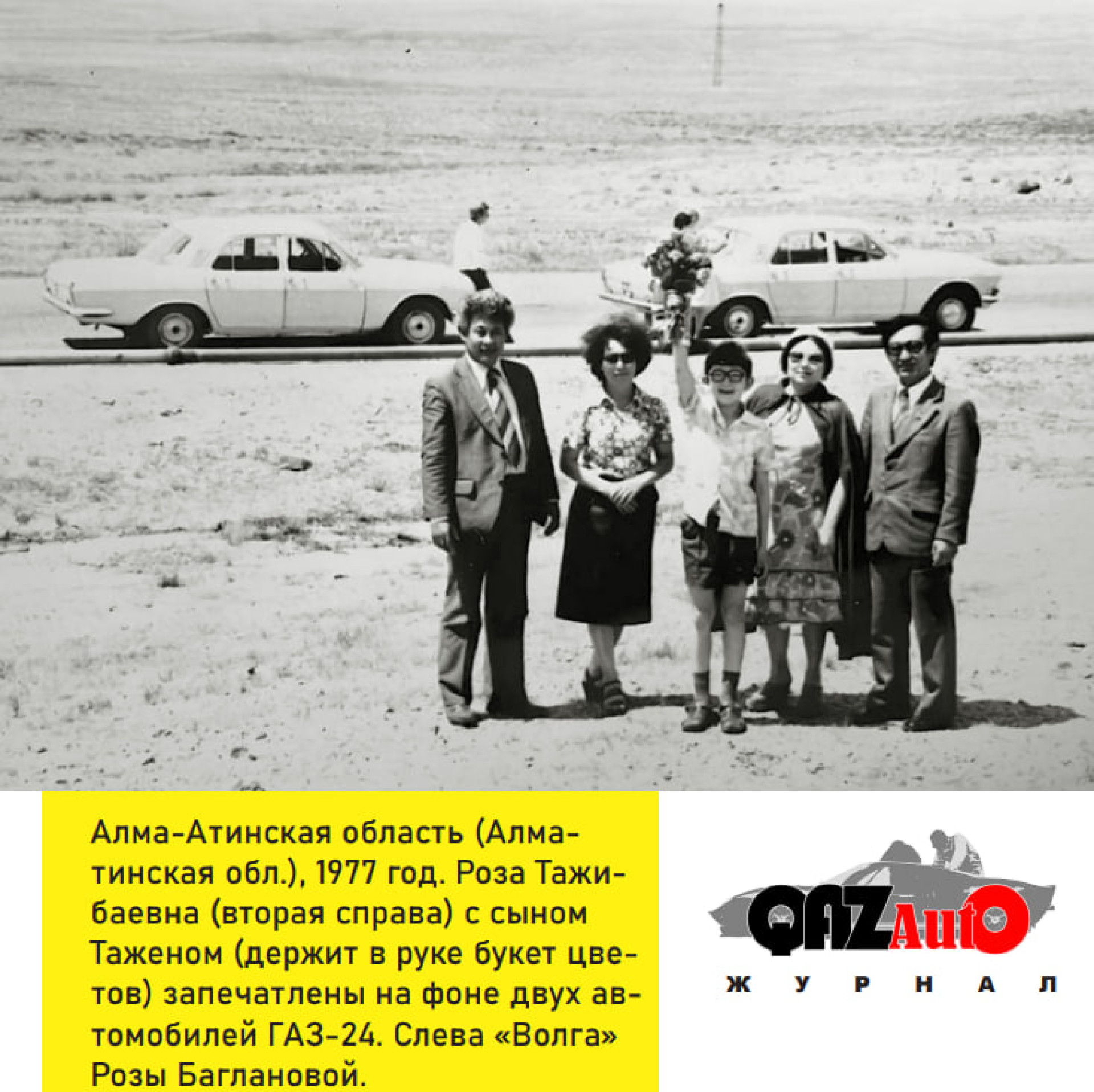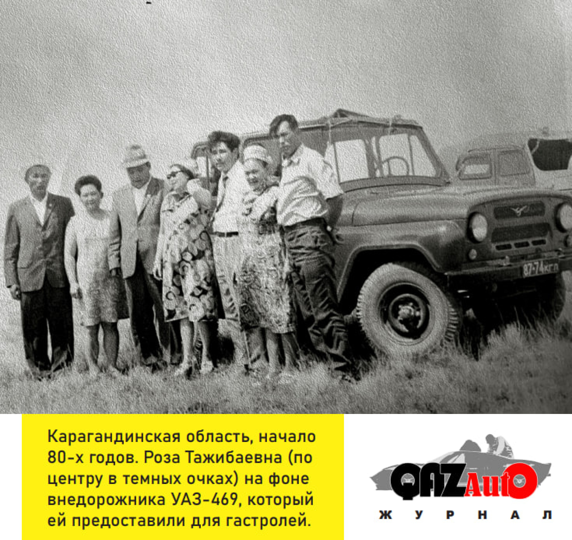 На одной из фотографий, сделанной в бескрайних степях Карагандинской области, Роза Тажибаевна стоит на фоне УАЗа-469.