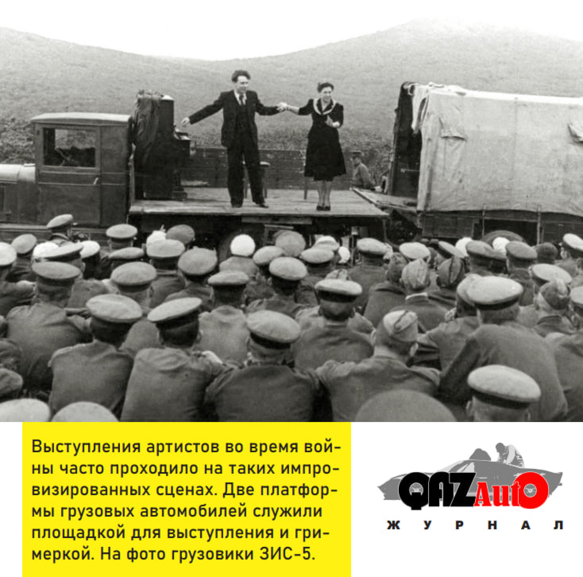 А еще грузовая платформа, или, по-простому, кузов, очень часто служила импровизированной сценой. Делалось это очень просто: два грузовика подъезжали вплотную друг к другу задними платформами, все борта опускались, и получалась возвышенная сцена.