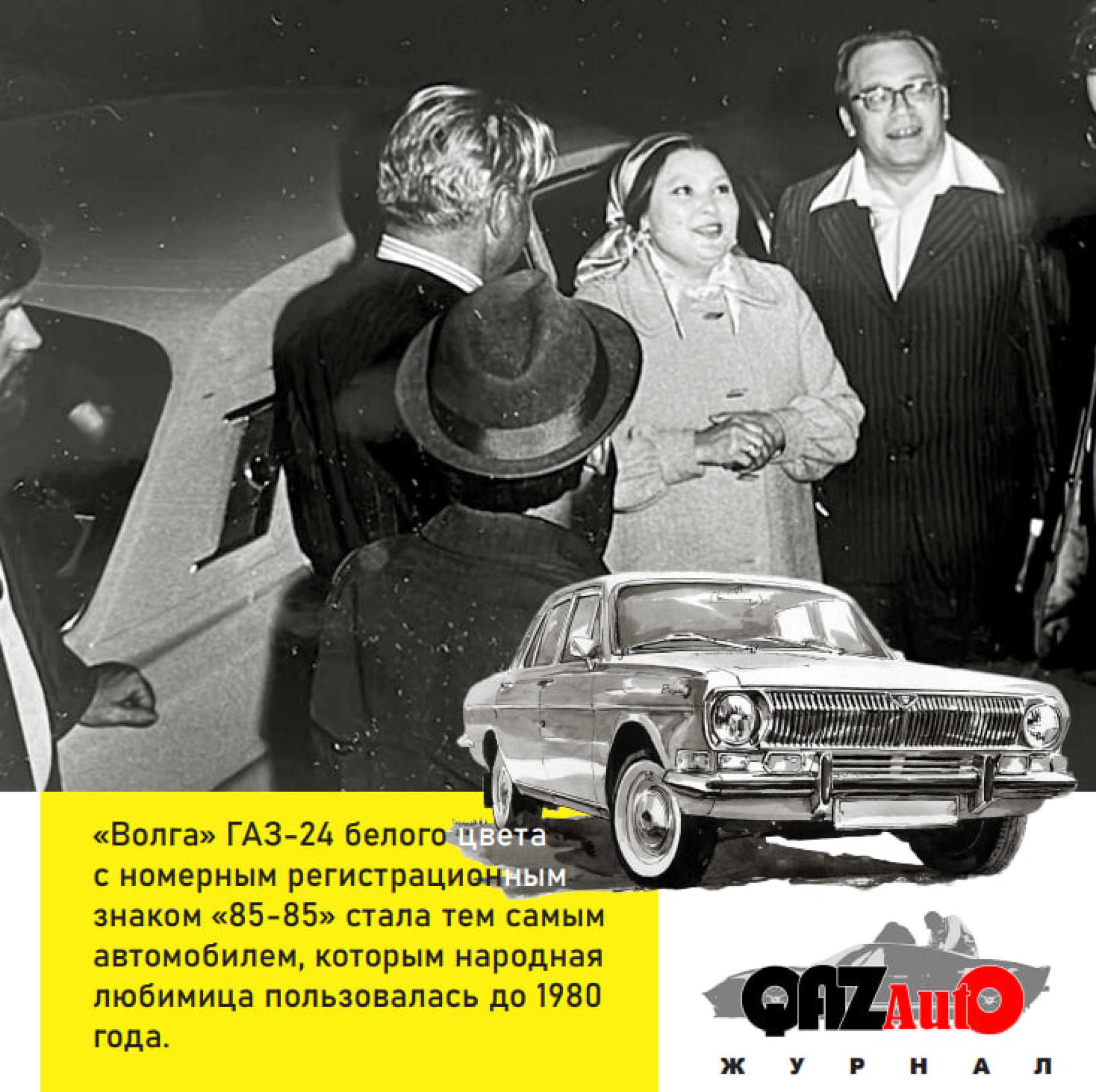 Тем не менее белая с легким оттенком серого "двадцать четверка" с номерным регистрационным знаком 85-85 стала тем самым автомобилем, которым народная любимица пользовалась до 1980 года.