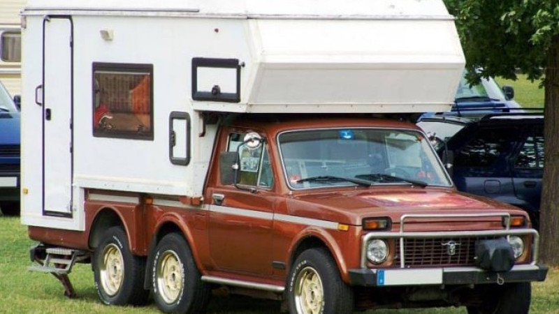 В конце 80-х литовской фирмой Auviga был изготовлен необычный автокемпинг на базе "Нивы". Кэмпер представлял из себя пикап на базе "Нивы", к которому цеплялся модуль с подкатной осью.
