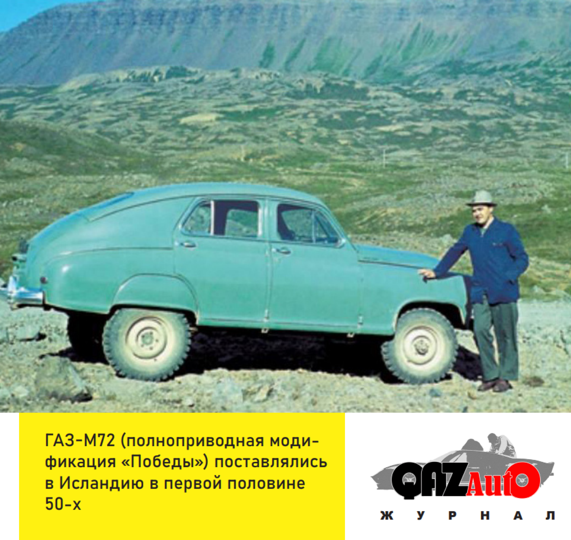 Хотя есть фотосвидетельства и более редких советских внедорожников, бегающих по дорогам Исландии. Речь идет об автомобиле ГАЗ-М72 (полноприводная модификация "Победы"). Наверняка также поставлялись полноприводные "Москвичи" модели 410/411.