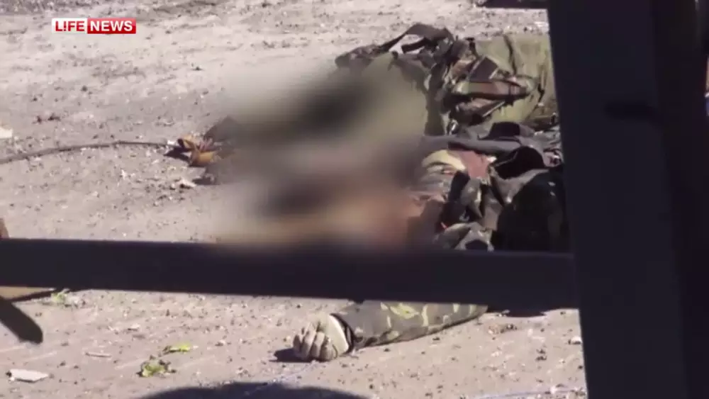Как сообщает LifeNews, бойцы ополчения при освобождении аэропорта обнаружили тела троих замученных танкистов. У погибших были вырваны зубы, кроме того, украинские военные обвязали их ноги проволокой, прицепили к танку и несколько часов волокли по земле на площадке перед аэропортом.