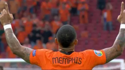 Первый гол на 11-й минуте с пенальти, который был назначен за фол Давида Алабы против Дензела Дюмфриса, забил Мемфис Депай.