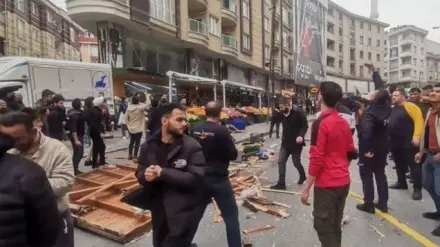 В Стамбуле бушует сильнейший ураган, ветер переворачивает машины, обрывает линии электропередачи и сносит крыши зданий.