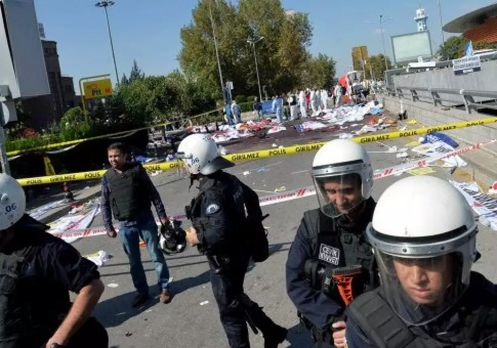 Напомним, что два взрыва произошли в столице Турции перед началом митинга, который был организован профсоюзными и общественными организациями под лозунгами "Труд, мир, демократия" в знак протеста против всплеска насилия из-за турецко-курдского конфликта на юго-востоке страны. Как сообщают местные СМИ со ссылкой на источники в правоохранительных органах, взрывы были устроены террористами-смертниками в районе железнодорожного вокзала под эстакадой, где участники митинга проходили к месту его проведения.