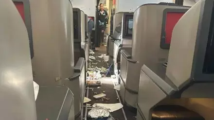 Судя по видео, в этот момент пассажиры обедали и еду разбросало по всему салону. Кое-где банка с газировкой даже пробила потолок самолета.