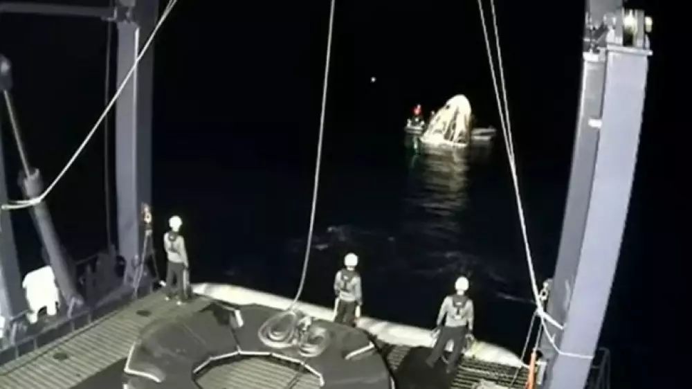 Пилотируемый корабль Crew Dragon компании SpaceX с экипажем миссии вернулся на Землю. Уникальные кадры приводнения корабля появились в Сети, передает Tengrinews.kz со ссылкой на LADbible.