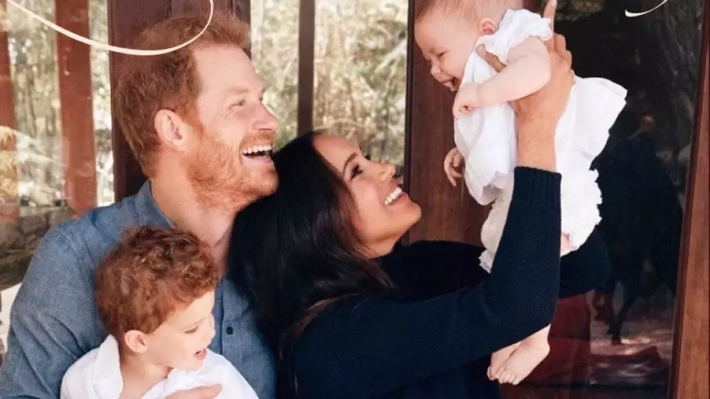 На открытке герцог и герцогиня Сассекские запечатлены с детьми, сыном Арчи и дочерью Лилибет. Уточняется, что до этого Гарри и Меган еще не показывали фотографий дочери.