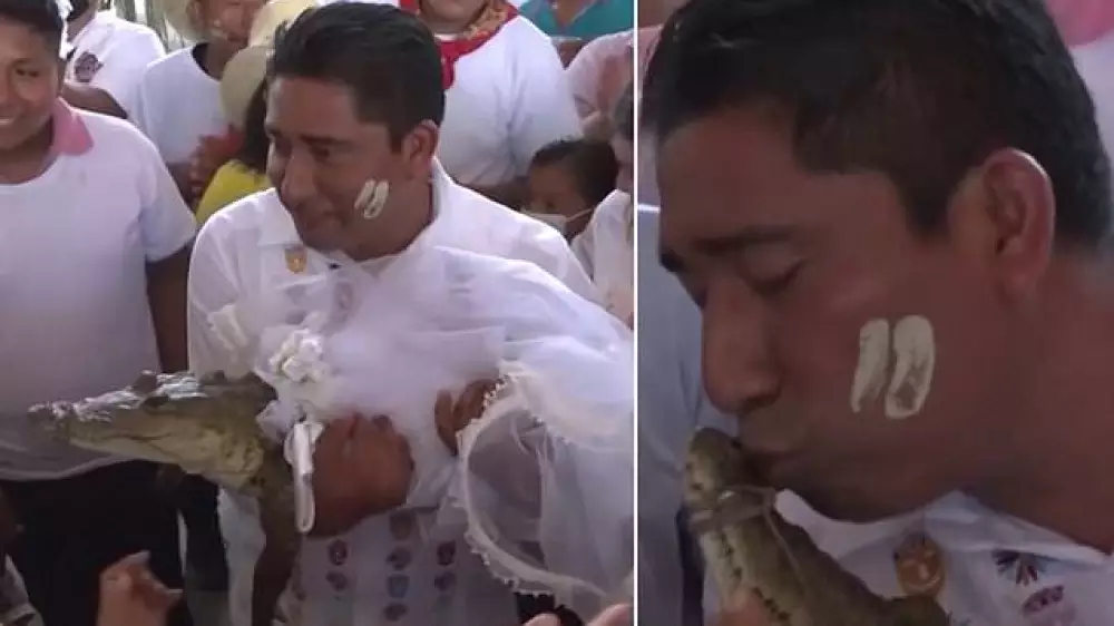 Мэр мексиканского Сан-Педро-Уамелула Виктор Хьюго Соса женился на аллигаторе в рамках векового ритуала коренных народов, призванного принести изобилие жителям, передает Tengrinews.kz со ссылкой на Daily Mail.