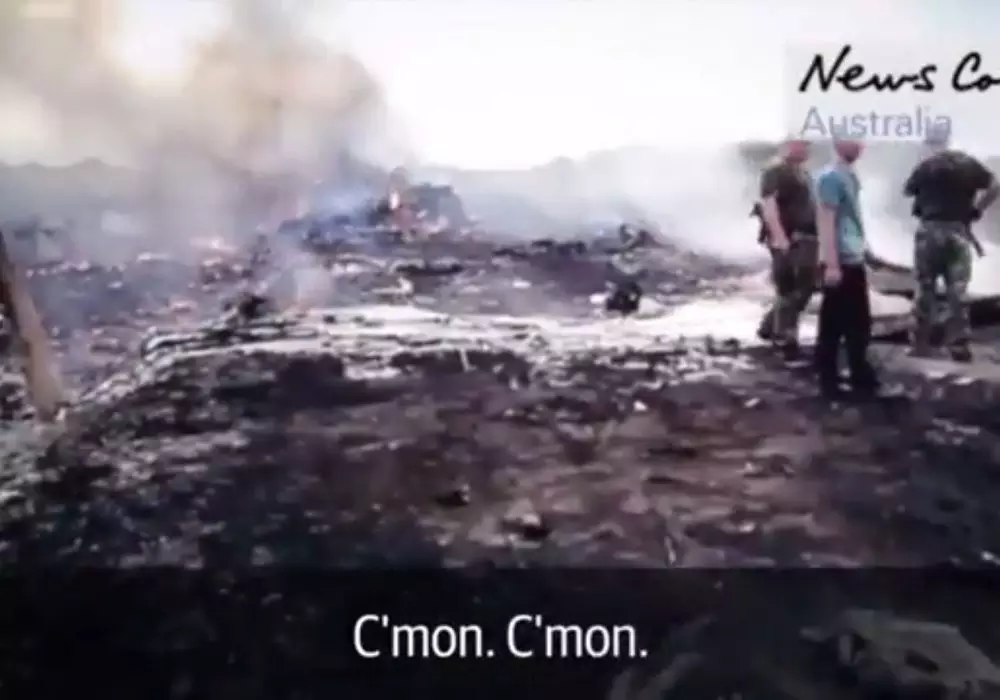 На видеозаписи ополченцы осматривают сумки погибших и собирают их личные вещи и мобильные телефоны. Один из командиров ополчения звонит в штаб и сообщает, что было два самолета. Затем он приказывает очистить место авиакатастрофы от гражданских лиц и просит не снимать на камеру его лицо. Он также поручает своим подчиненным заняться поиском бортовых самописцев.