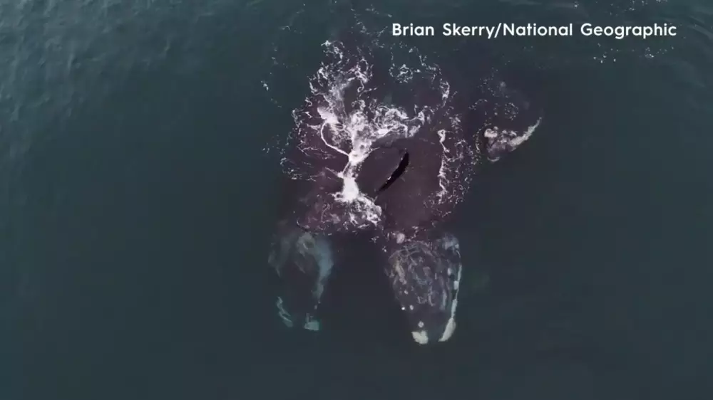 По мнению ученых из Вудс-Хоула, такое поведение наблюдается редко и, возможно, это был первый случай, когда объятие китов зафиксировали с дрона.