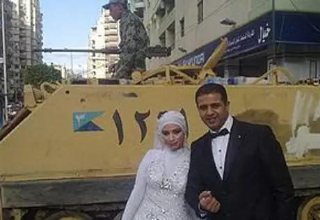 На площади Тахрир в Каире пара египтян Ахмед Заафан и Ола Абдель Хамид сыграла свадьбу, не отрываясь от участия в оппозиционных выступлениях, сообщает UPI.