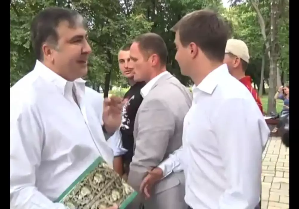 Филатов обвинил Березенко в раздаче денег избирателям. Он назвал кандидата в депутаты "молодым и циничным подонком", после чего вступил в словесную перепалку с Саакашвили. "И вы также деньги раздавайте, Михаил!" - сказал Филатов губернатору. Саакашвили сначала не понял, о каких деньгах идет речь, а потом назвал Филатова "накачанным ублюдком".
