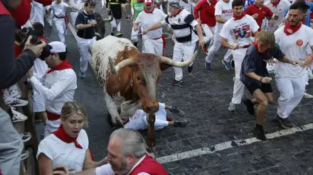 Двенадцать быков за 2,5 минуты промчались по узким улицам города Памплоне 9 июля. На мероприятии собрались тысячи человек. В основной массе это мужчины, но были среди присутствующих и женщины. Люди пришли "пощекотать себе нервы", убегая от разъяренных быков. Эта традиция называется энсьерро. Ее смысл прост: пробежать как можно ближе от одного из 12 быков, при этом не оказавшись под копытами или на рогах кого-то из них.
