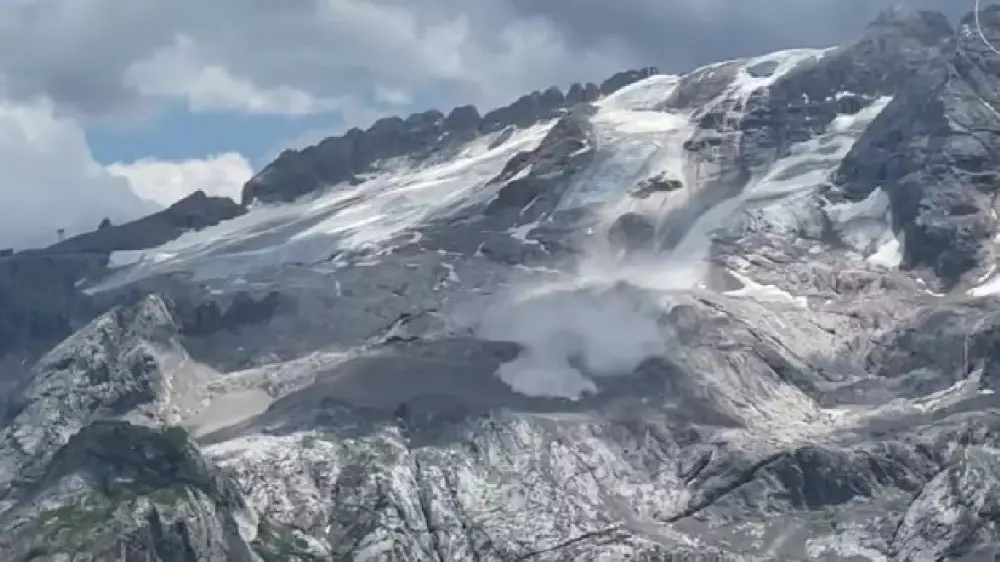 Обрушение вершины ледника Мармолада произошло во время восхождения альпинистов. Людей снес поток из снега, камней и льда. Тела погибших уже обнаружены. На месте ЧП продолжаются поиски других возможных пострадавших. В поисковой операции задействованы все горно-спасательные станции в районе и пять вертолетов.