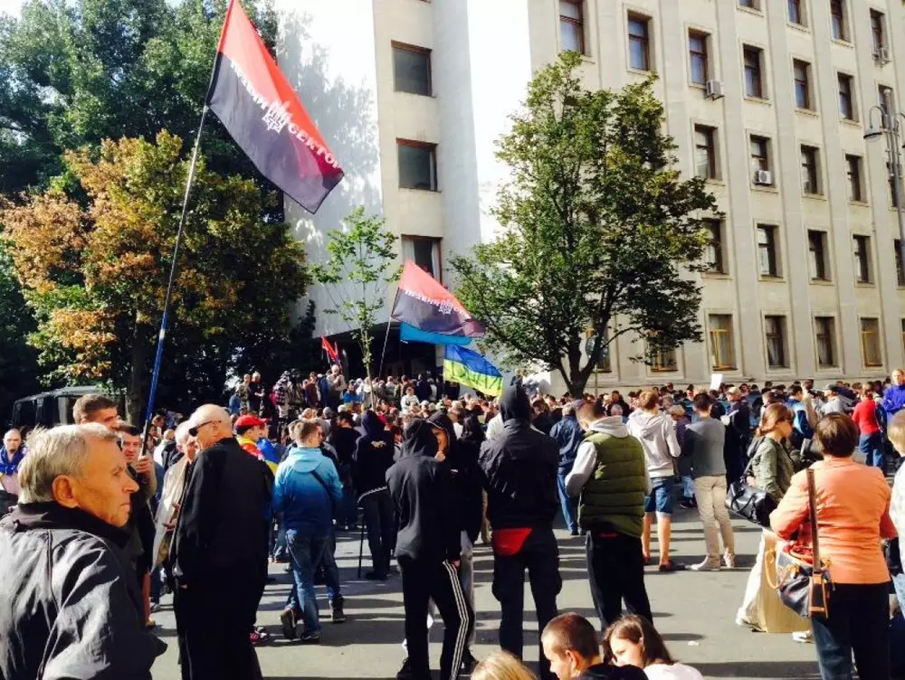 Митингующие, которых визуально насчитывается порядка 500 человек, выдвигают руководству государства несколько требований. Среди них - переформатирование управленцев антитеррористической операции и генерального штаба Украины, наказание тех военных в генштабе, которые привели к потерям украинских солдат, а также - предоставление тяжелой техники в зону АТО. Кроме того, "Правый сектор" просит признать организацию как один из батальонов национальной гвардии.