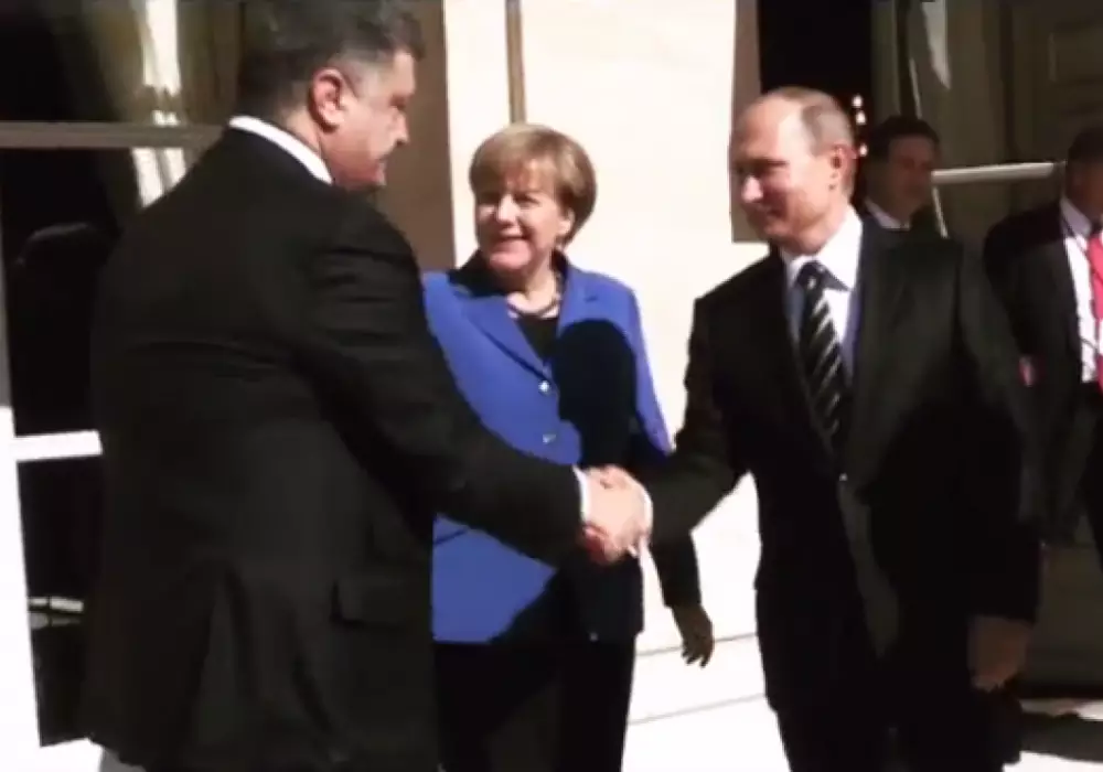 Напомним, видеокадры, на которых Путин и Порошенко жмут друг другу руки в присутствии канцлера Германии Ангелы Меркель перед началом встречи "нормандской четверки" в Париже, появились в Instagram французского президента Франсуа Олланда. "Обсуждаем с Ангелой Меркель, Владимиром Путиным и Петром Порошенко ситуацию на Украине", - написал тогда президент Франции.