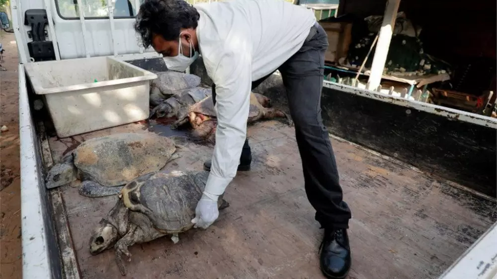 Сотни мертвых морских животных вымыло на побережье Шри-Ланки через несколько недель после того, как грузовое судно X-Press Pearl, перевозившее опасные химикаты, загорелось и затонуло у берегов Коломбо в начале июня, передает Tengrinews.kz со ссылкой на ВВС.