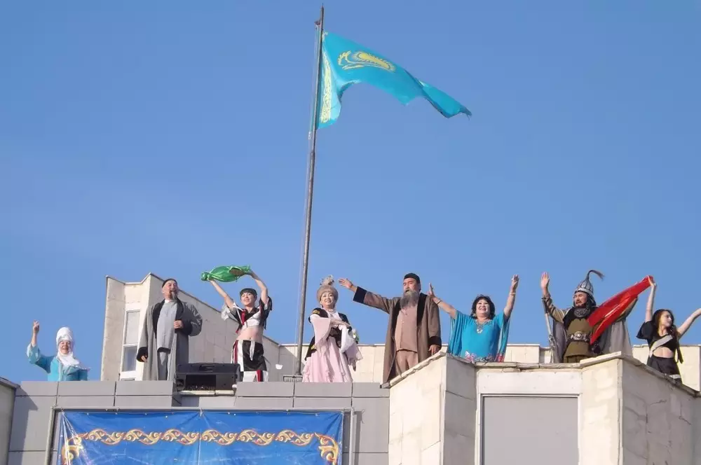Коллективы двух театров - имени Абая и Достоевского решили в день открытия сезона (1 сентября) объединиться и порадовать своих зрителей. Для этого актеры решили забраться на крышу театра. Находясь на высоте в несколько метров, они показали собравшимся горожанам несколько ярких отрывков из известных спектаклей и капустников.