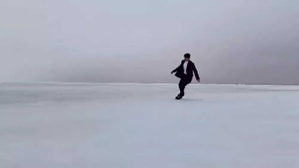 Клип с казахстанским школьником Нурали Бектимировым, который катается по замерзшей поверхности Каспийского моря, опубликовал на своей странице в Instagram фотограф Ади Бектемиров.