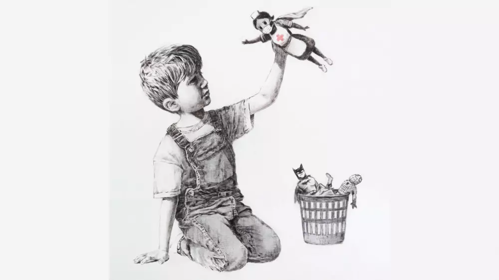 На картине Бэнкси изображен мальчик, который держит в руке куклу-врача. В мусорном ведре рядом с ним лежат Человек-паук и Бэтмен. Картина, таинственным образом появившаяся в больнице в начале пандемии, символизирует веру в медиков и уважение к этой работе.