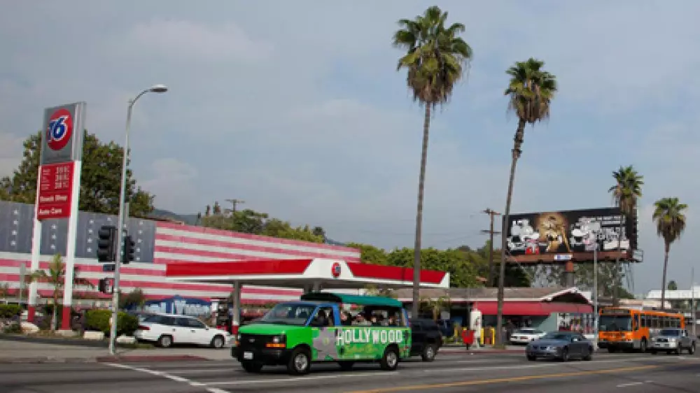 На бульваре Сансет художник разукрасил рекламный щит. На билборде рядом с изображением девушки-модели появились известные мультяшные персонажи Микки-Маус и Минни-Маус. Еще один рисунок Бэнкси оставил на стене одного из домов в Беверли-Хиллз. На здании художник нарисовал писающую собаку. А Вествуд украсило граффити с изображением мальчика с пулеметом в руке.