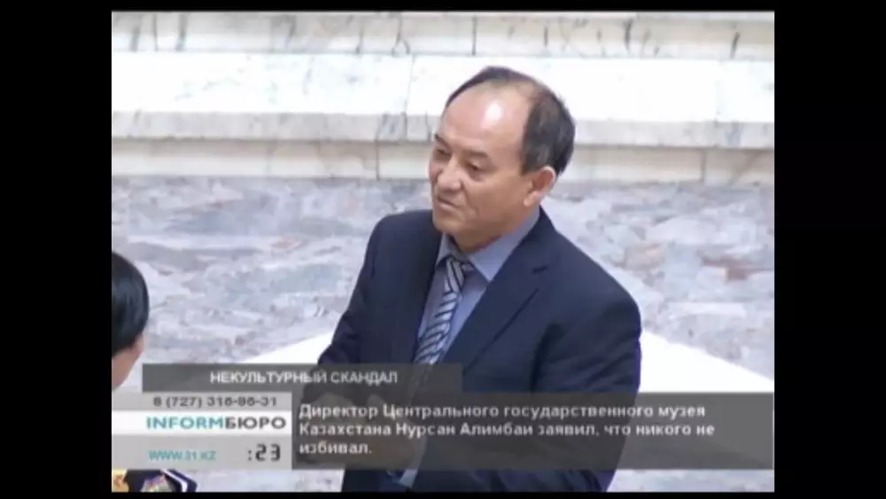 Директор расположенного в Алматы Центрального государственного музея Казахстана Нурсан Алимбай оказался в центре скандала. Один из сотрудников музея - сантехник Кайрат Шаймарданов обвинил патрона в рукоприкладстве, передает телеканал КТК.
