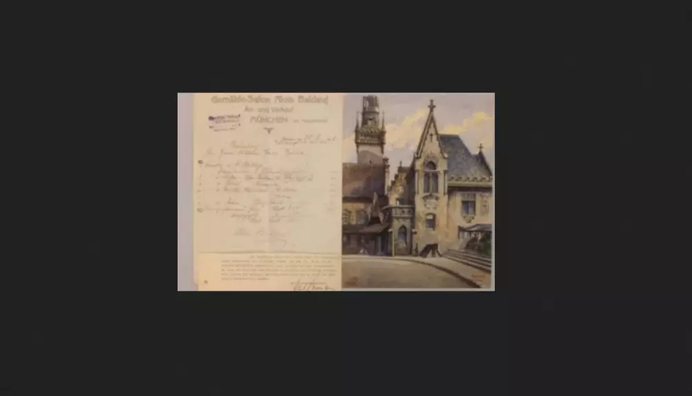 Гитлер написал картину "Старая ратуша" акварелью в 1914 или 1915 году. На полотне изображено регистрационное бюро в Мюнхене. Торги пройдут 22 ноября в Нюрнберге.