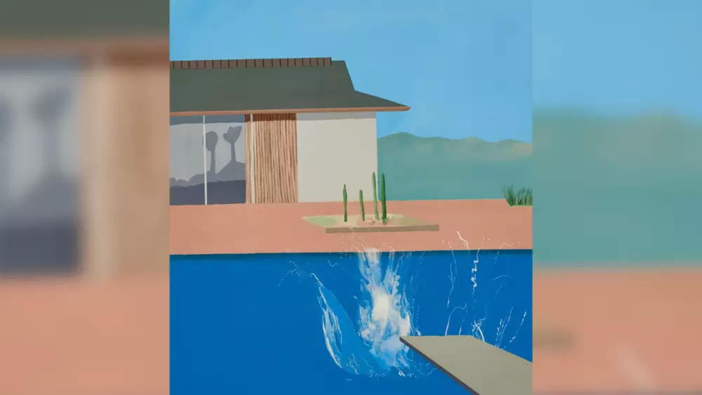 Дэвид Хокни закончил работу над своей картиной "Всплеск" в 1966 году. На полотне изображен момент всплеска воды в бассейне возле дома.
