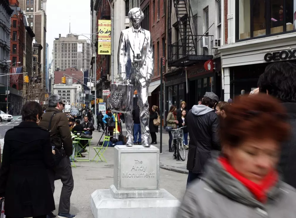 Памятник был установлен у здания, где ранее располагалась "Фабрика" Уорхола, в которой в тиражной технике шелкографии производились картины в соответствии с идеями художника. Инициатором возведения монумента выступила некоммерческая организация Public Art Fund. По словам автора памятника, он рассчитывает, что площадка, где установлена хромированная копия Уорхола, станет неким местом паломничества для творческой молодежи. “Так же, как могила Оскара Уайльда в Пер-Лашез, памятник Уорхолу должен стать обязательным пунктом посещения в ходе поездки в Нью-Йорк", - сказал Пруитт.