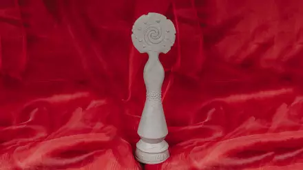 Статуэтка – это не просто сувенир, считает автор, поэтому было необходимо объединить в ней национальную форму с высоким искусством. В фигуре Умай можно проследить одновременно женский образ, отсылку к элементам традиционного прикладного искусства, изображению юрты. На основании из зеленых пластин, инкрустированных камнями, нанесено название премии на латинице и древнетюркском языке.