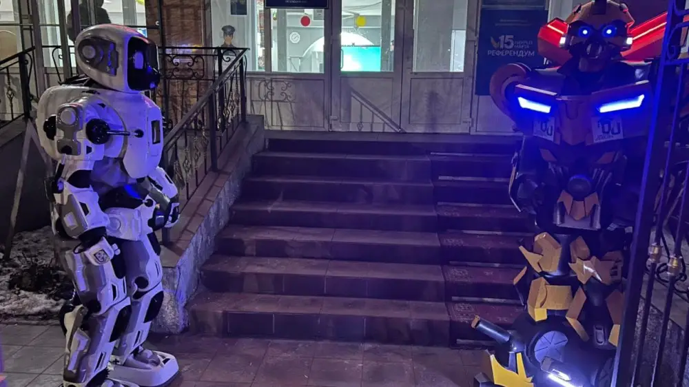 Появление роботов на участке референдума №459 с самого утра заметно подняло настроение всем присутствующим. Как отмечают в областном акимате, самые смелые уходили с голосования не только с чувством выполненного долга, но и эффектными селфи с добрыми роботами-пришельцами. Появление ростовых кукол-трансформеров на референдуме стало своеобразной аллегорией на трансформации, которые предстоит пройти нашему государству. Так, кто-то нашел в ярком представлении глубокий смысл, а кто-то повод лишний раз улыбнуться и погрузиться в детство.