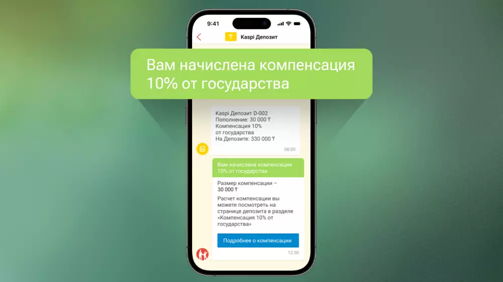 Более 1,2 миллиона клиентов Kaspi.kz получили государственную компенсацию по депозитам. Компания мгновенно перевела деньги, как только государство предоставило компенсацию.