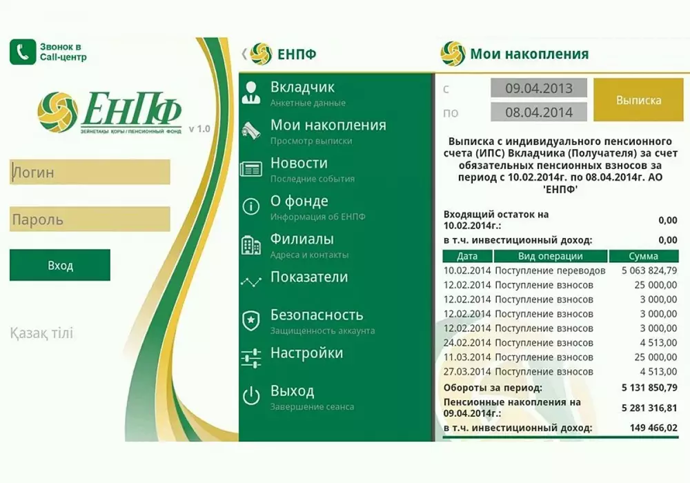 По его словам, ЕНПФ зарегистрировался в компаниях Google, Apple, Microsoft и получил соответствующие сертификаты для разработки своего мобильного приложения. "По своему функционалу все версии мобильного приложения позволяют вкладчикам в режиме онлайн связываться с ближайшим филиалом или call-центром, получать новости от ЕНПФ и просматривать выписки со своих пенсионных счетов. Всего с момента запуска мобильного приложения ENPF до 1 ноября 2014 года было произведено свыше 11 тысяч скачиваний", - проинформировал Ерденаев.