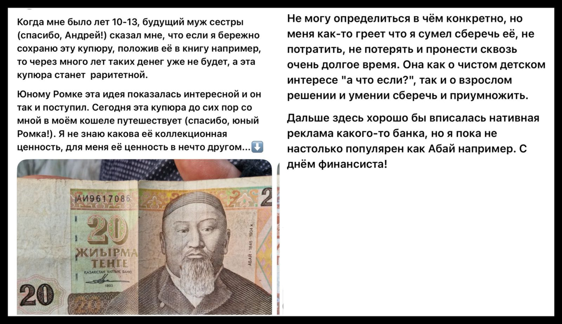 Всё началось с поста 37-летнего Романа из Темиртау, который 25 лет хранил купюру как талисман. Его публикация быстро стала вирусной.