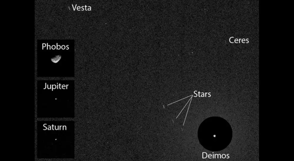 По словам Марка Леммона (Mark Lemmon) из Университета Техаса, фотография была сделана в рамках эксперимента по проверке прозрачности атмосферы Марса в ночное время. Кроме Весты и Цереры камера марсохода запечатлела спутники Марса Деймос и Фобос, а также Юпитер и Сатурн.