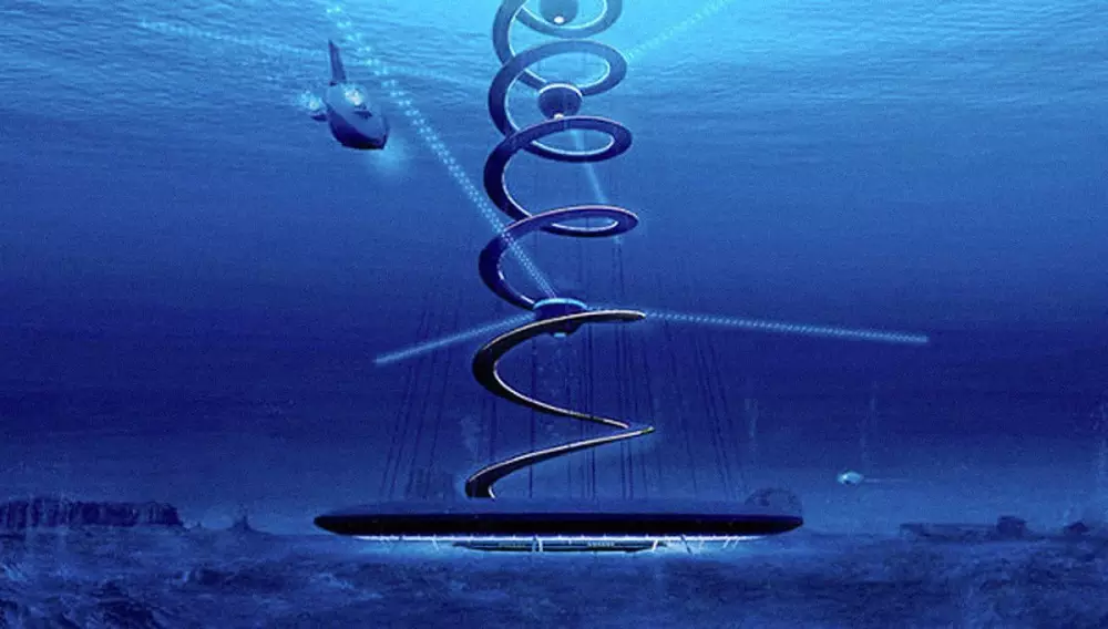 Снизу сфера будет соединена с 15-километровой спиралью, уходящей в глубь океана на 3-4 километра. С другого конца к спирали будет присоединена так называемая "земная фабрика" - исследовательский центр по разработке и изучению ресурсов морского дна и его недр. Часть энергии в подводном городе, согласно планам, будет также вырабатываться генераторами за счет разницы температур между поверхностными теплыми и придонными холодными водами.